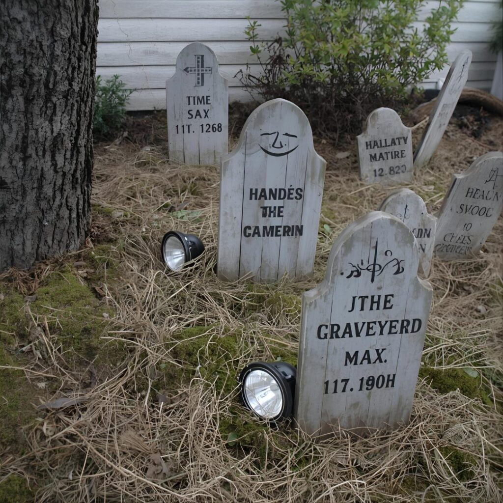 Transform old wood planks into gravestones by cutting and painting them gray. Write funny or spooky names and dates to give personality. Arrange them in the yard with moss or hay for a haunted cemetery effect. It’s rustic and budget-friendly.
