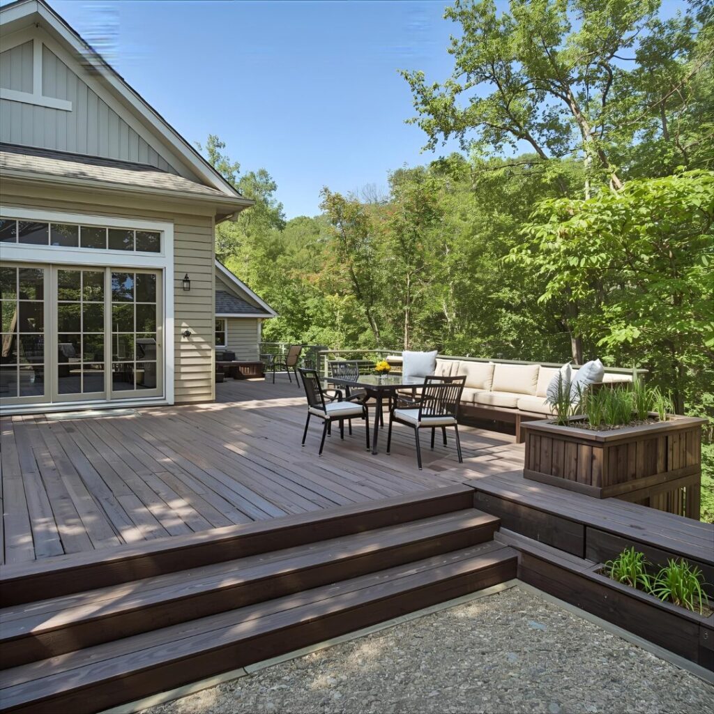 If you have space, a tiered deck can create distinct outdoor zones—one for lounging, another for dining, and perhaps a small corner for plants.