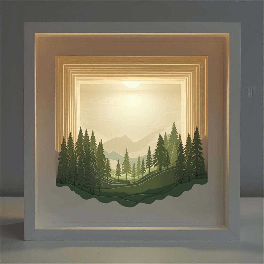Build a tiny, contained world inside a deep frame by creating a layered paper shadow box. You can design and cut out multiple layers of a sceneโ€”like a forest, a cityscape, or an abstract patternโ€”and stack them to create depth. The process of planning the layers and seeing the dimension come to life is utterly absorbing and sparks the imagination. This project allows for endless storytelling and personalization, making it a deeply engaging long-term project. When placed on a shelf with a small LED light behind it, your shadow box becomes a captivating source of calm.