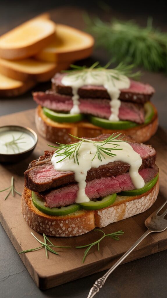 But here’s the real secret: this recipe solves the common problems that plague most steak sandwiches. No more tough, chewy meat. No more soggy bread. No more bland, one-note flavors. We’ve perfected every element, from the marinade that ensures tender steak every time to the cooking method that guarantees crispy bread that stands up to the juicy filling. Get ready to create a sandwich that not only satisfies your cravings but might just be the best thing you’ve eaten all year.