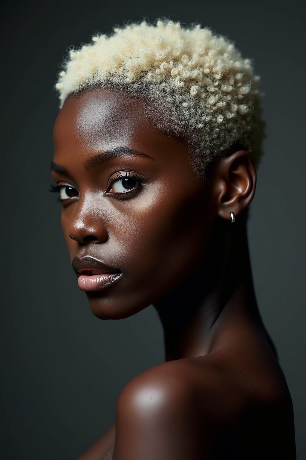 Color Contrast: Platinum blonde creates maximum impact against dark skin tones, highlighting facial features.
