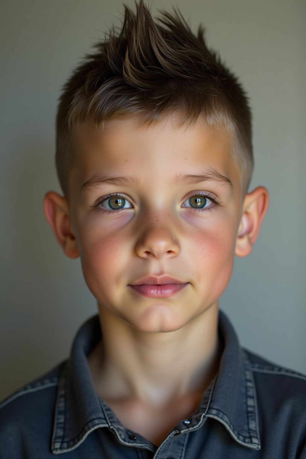 The Faux Hawk Low Taper Fade combines rebellion with sophistication, perfect for young boys who want to stand out while still looking polished. The defining characteristic is the longer hair on top styled upward in a mohawk-inspired fashion, while the sides feature a clean taper fade that gradually decreases in length. This versatile style allows kids to express their personality through styling options—they can wear it spiky for special occasions or more relaxed for everyday activities. Parents appreciate that despite its edgy appearance, this haircut requires minimal maintenance and grows out nicely, making it an excellent choice for active children.