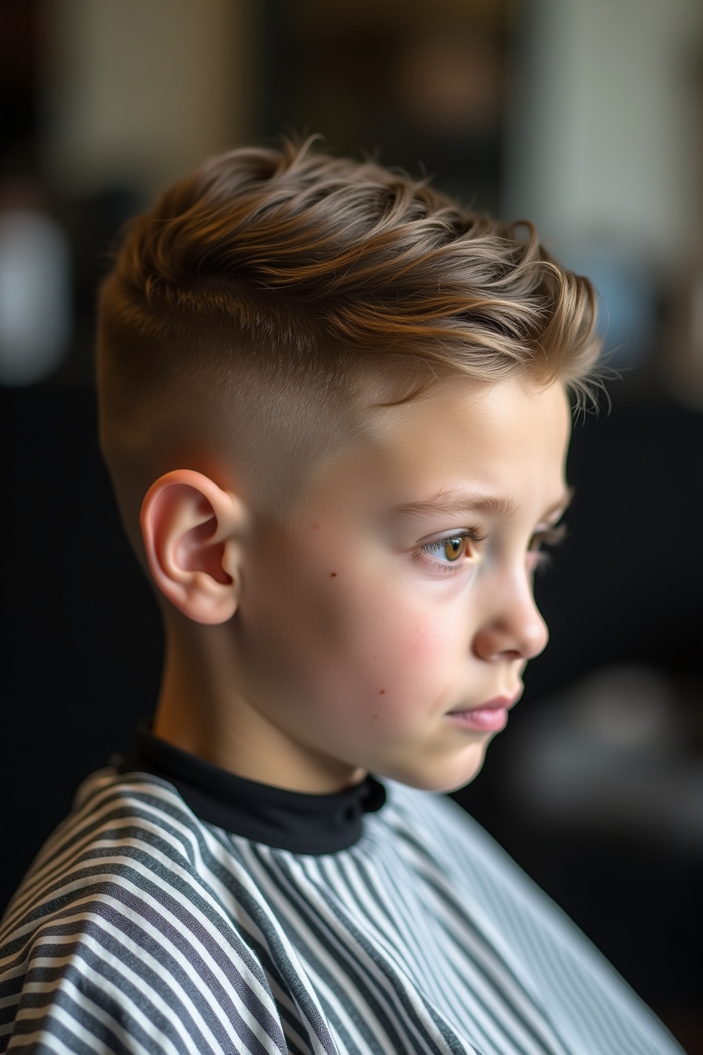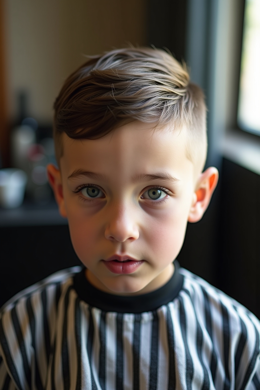 The Classic Low Taper Fade stands as one of the most enduring short haircut options for boys, offering a perfect balance between neat presentation and effortless style. This timeless choice gradually transitions from shorter sides to slightly longer hair on top, creating a clean silhouette that works beautifully for school, special occasions, or casual everyday wear. Unlike more dramatic cuts, the low taper fade maintains enough length to be versatile while still providing that sharp fade effect that works well with various hair textures, including straight, wavy, or curly hair. Its enduring popularity comes from its ability to look neat without frequent touch-ups, making it an ideal choice for active boys who need a low-maintenance yet stylish haircut.