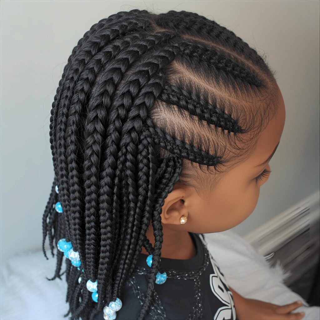 Cornrow braids are a long-lasting style that protects your toddlerโs scalp and hair. These tight, clean braids can be designed in straight or curved patterns. Adding beads at the ends gives a playful touch that toddlers adore. This style reduces daily maintenance and stays tidy for several days, making it ideal for busy mornings.