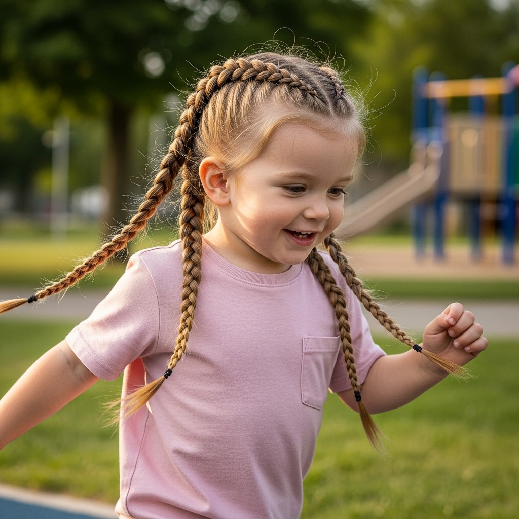 Double Dutch braids are sporty and fun, perfect for active toddlers. These inside-out braids give a fuller, more defined look than regular braids. They stay secure even during playtime and naps. Parents love this style because itโs practical, protective, and keeps hair neatly in place all day long.