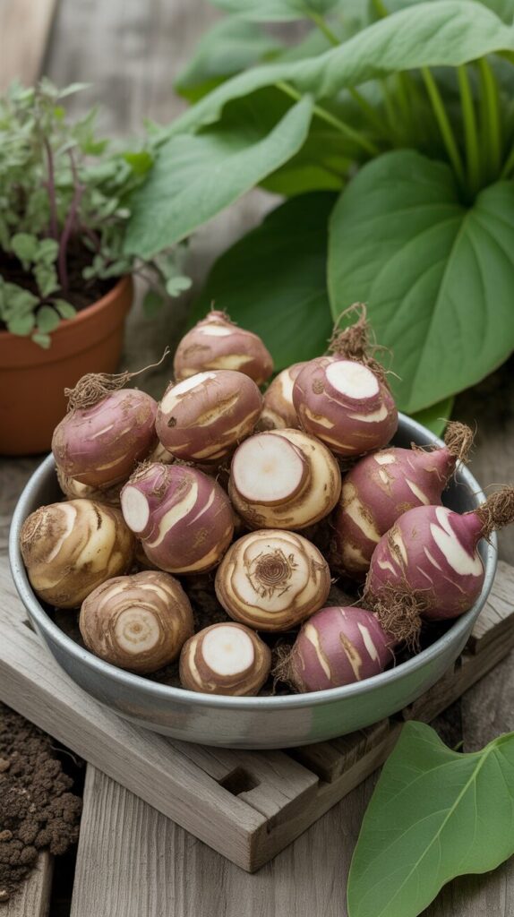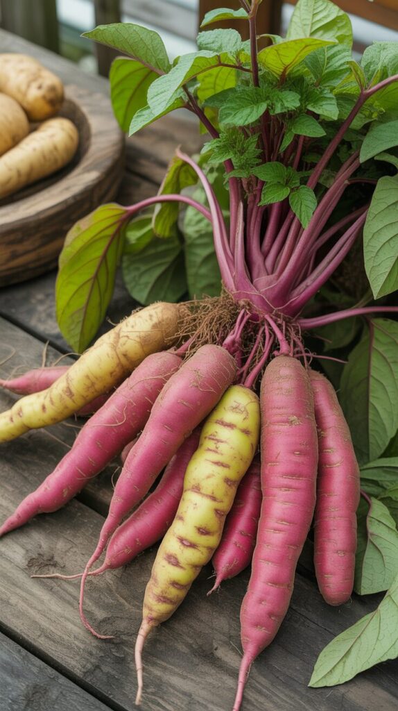 Oca produces small, colorful tubers with a tangy, lemony flavor. It’s a fantastic potato alternative that adds variety to your meals.