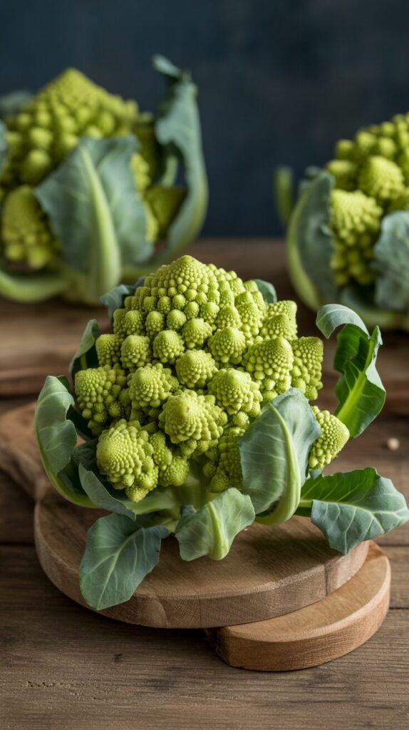 With its spiraled, fractal-like florets, romanesco broccoli is as much art as it is food. It has a mild, nutty taste and is excellent roasted, steamed, or eaten raw in salads.