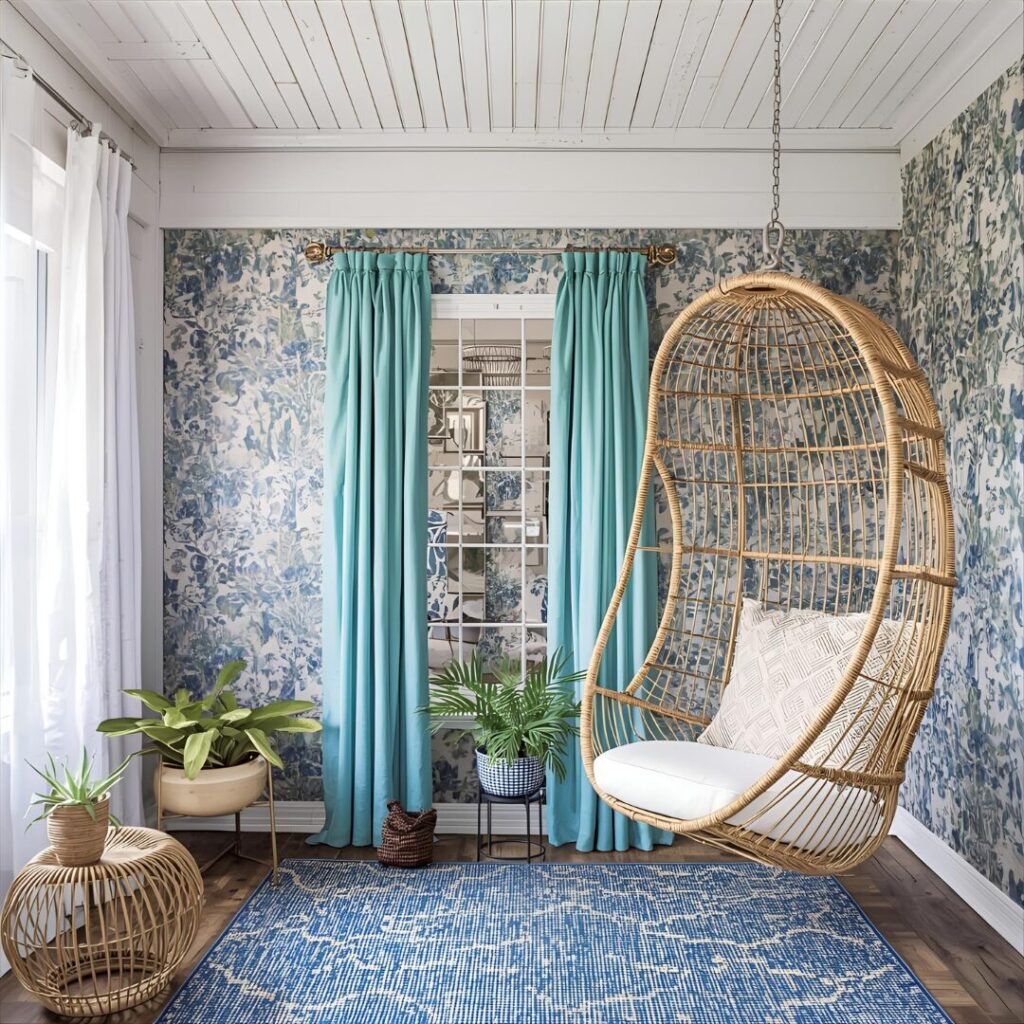 For a truly whimsical touch, add a swing or hanging chair indoors. They create a fun and relaxing nook for reading or lounging. Wicker, rattan, or upholstered swings can blend style with comfort.