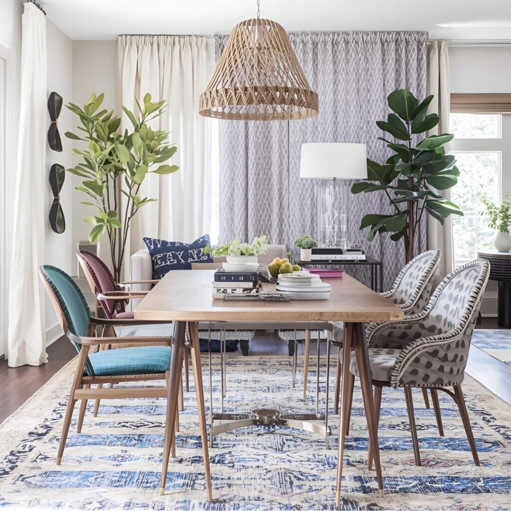 Instead of uniform furniture sets, embrace variety by mixing different chairs, tables, and sofas. The eclectic combination adds character while preventing the space from looking too formal. This works beautifully in dining rooms or living areas where creativity shines.